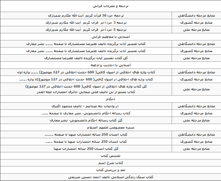 منابع رشته های بخش کتبی سی امین جشنواره ملی قرآن و عترت دانشجویان سراسر کشور