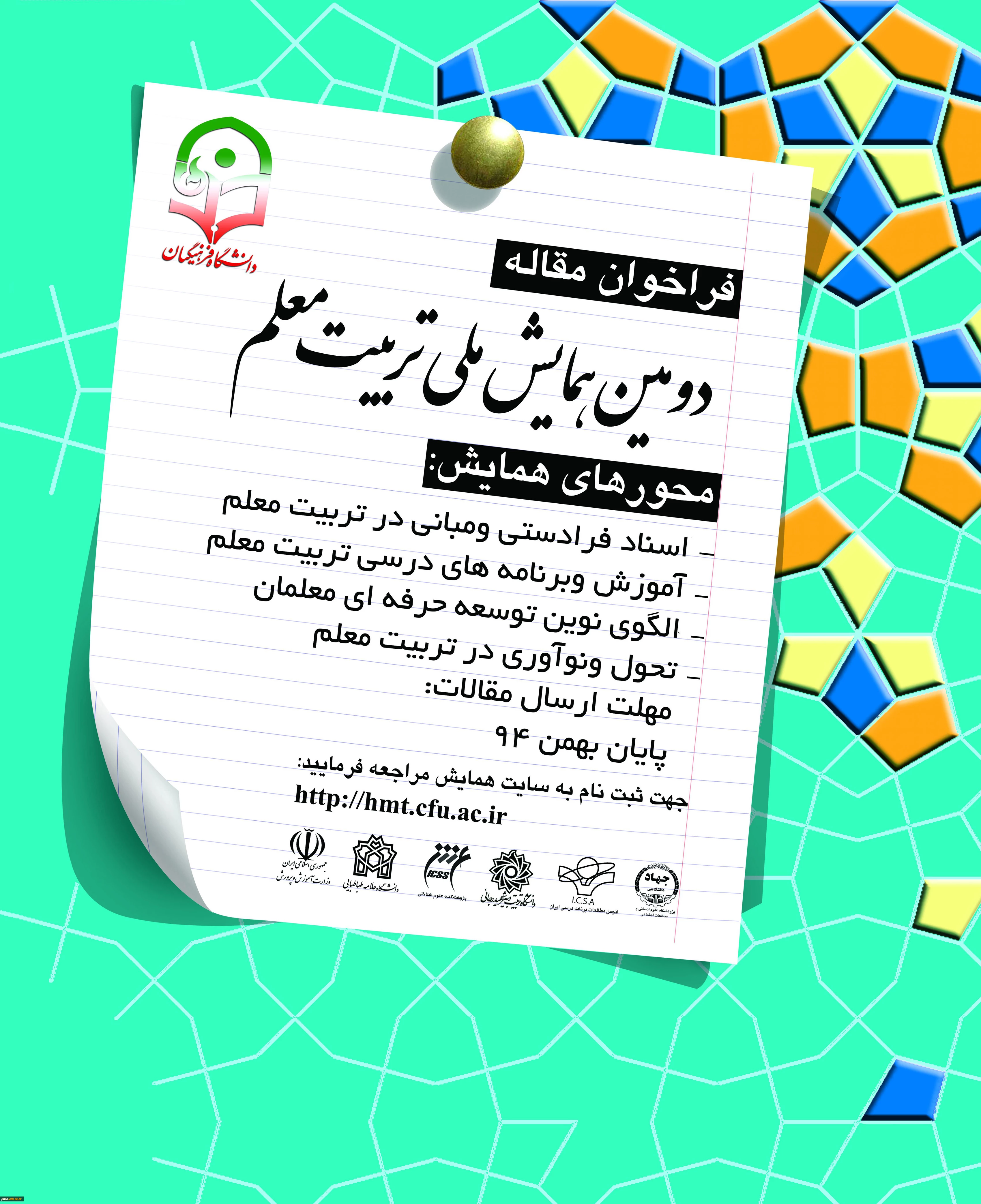 امتیاز دهید : تمدید ارسال مقاله به دومین همایش ملی تربیت معلم تا پایان بهمن ماه 94 یکشنبه 11 بهمن 1394 ساعت 22:19