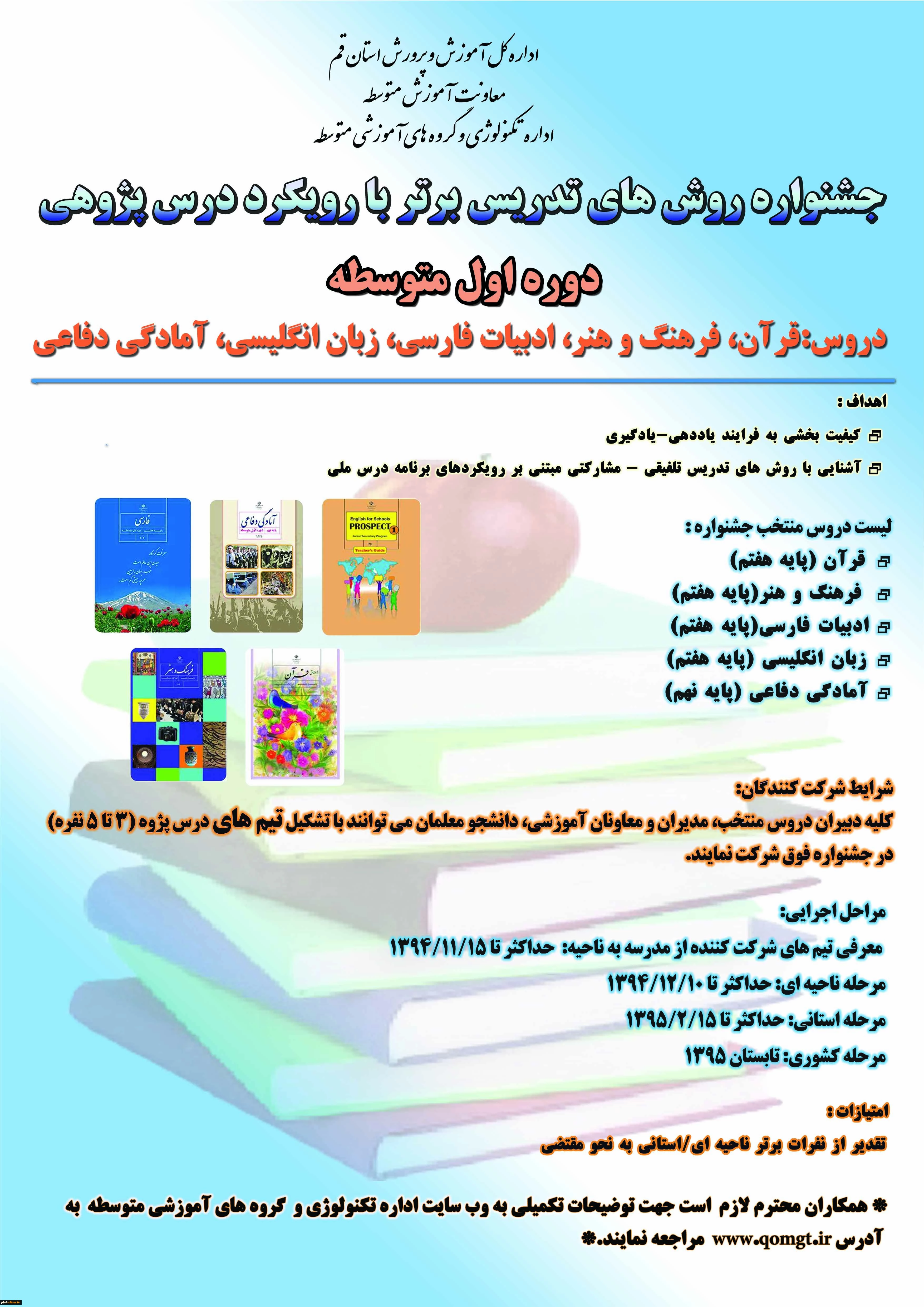 امتیاز دهید : جشنواره ی «راهبردهای یاددهی- یادگیری موقعیت محور با رویکرد درس پژوهی » 3 چهارشنبه 7 بهمن 1394 ساعت 9:02
