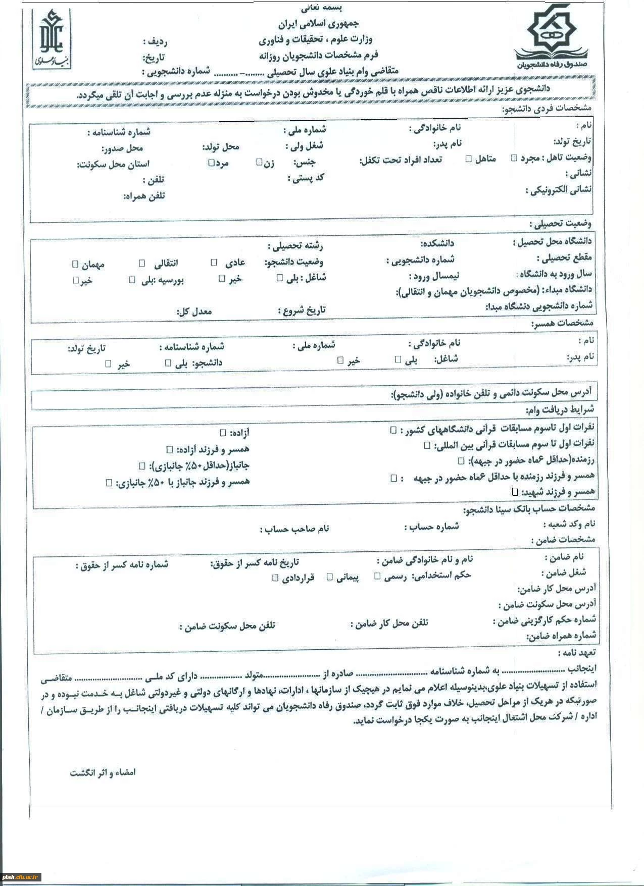 فرم دریافت وام