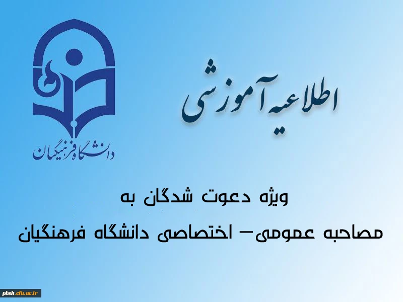 امتیاز دهید : اطلاعیه ویژه دعوت شدگان به مصاحبه عمومی- اختصاصی دانشگاه فرهنگیان 2 چهارشنبه 10 شهریور 1395 ساعت 22:02