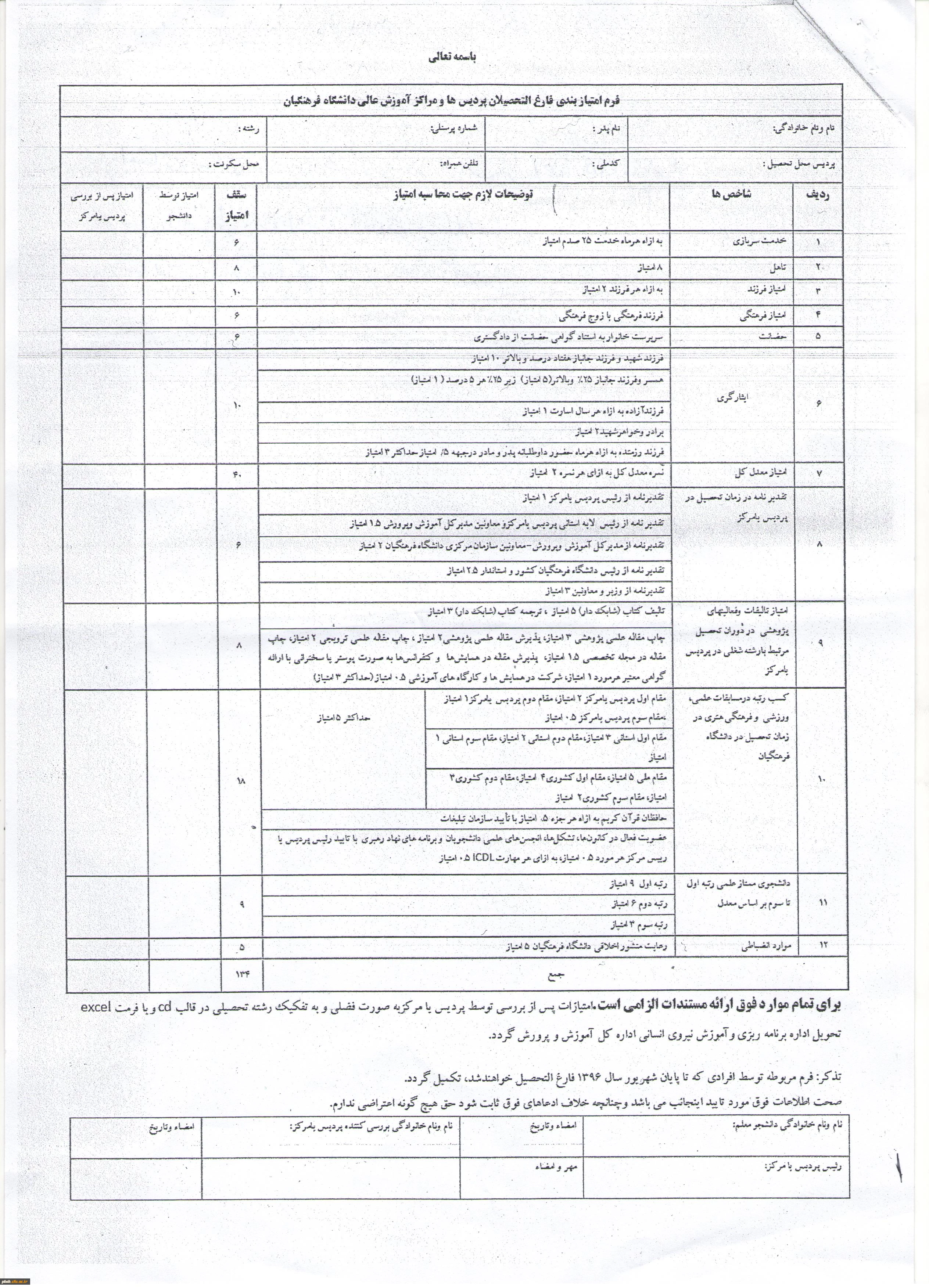 قابل توجه دانشجویان ورودی 92 تکمیل فرم امتیاز بندی 4