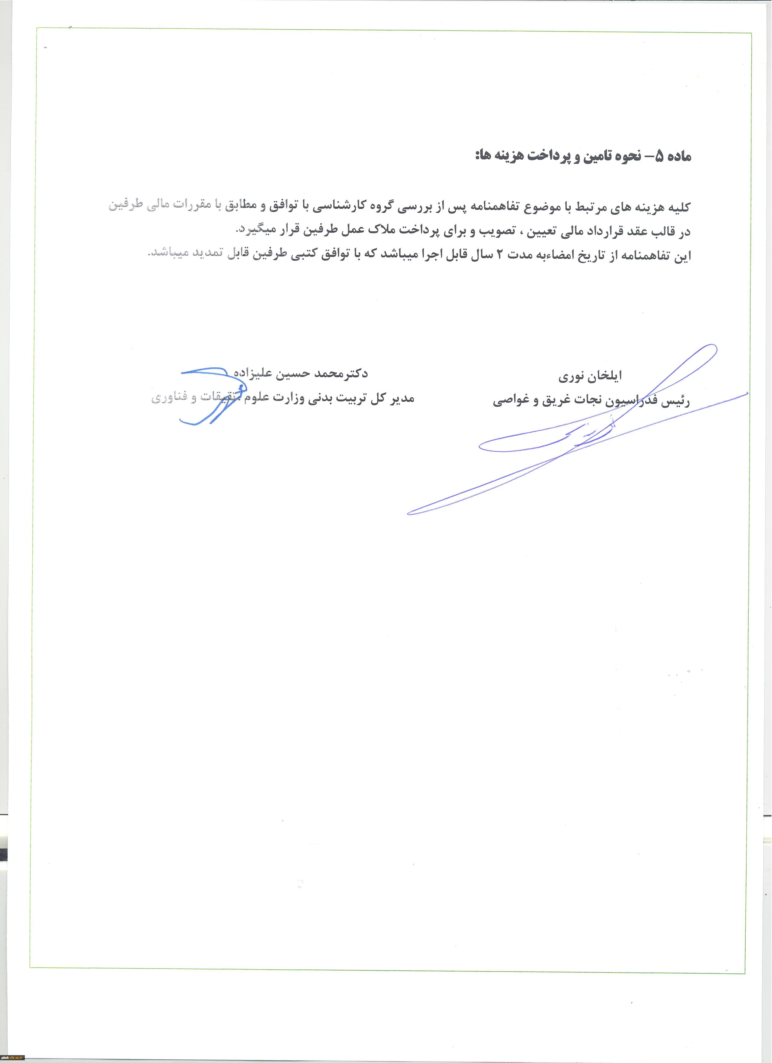 تفاهم نامه اداره کل تربیت بدنی وزارت علوم، تحقیقات و فناوری با فدراسیون نجات غریق و غواصی جمهوری اسلامی ایران 3