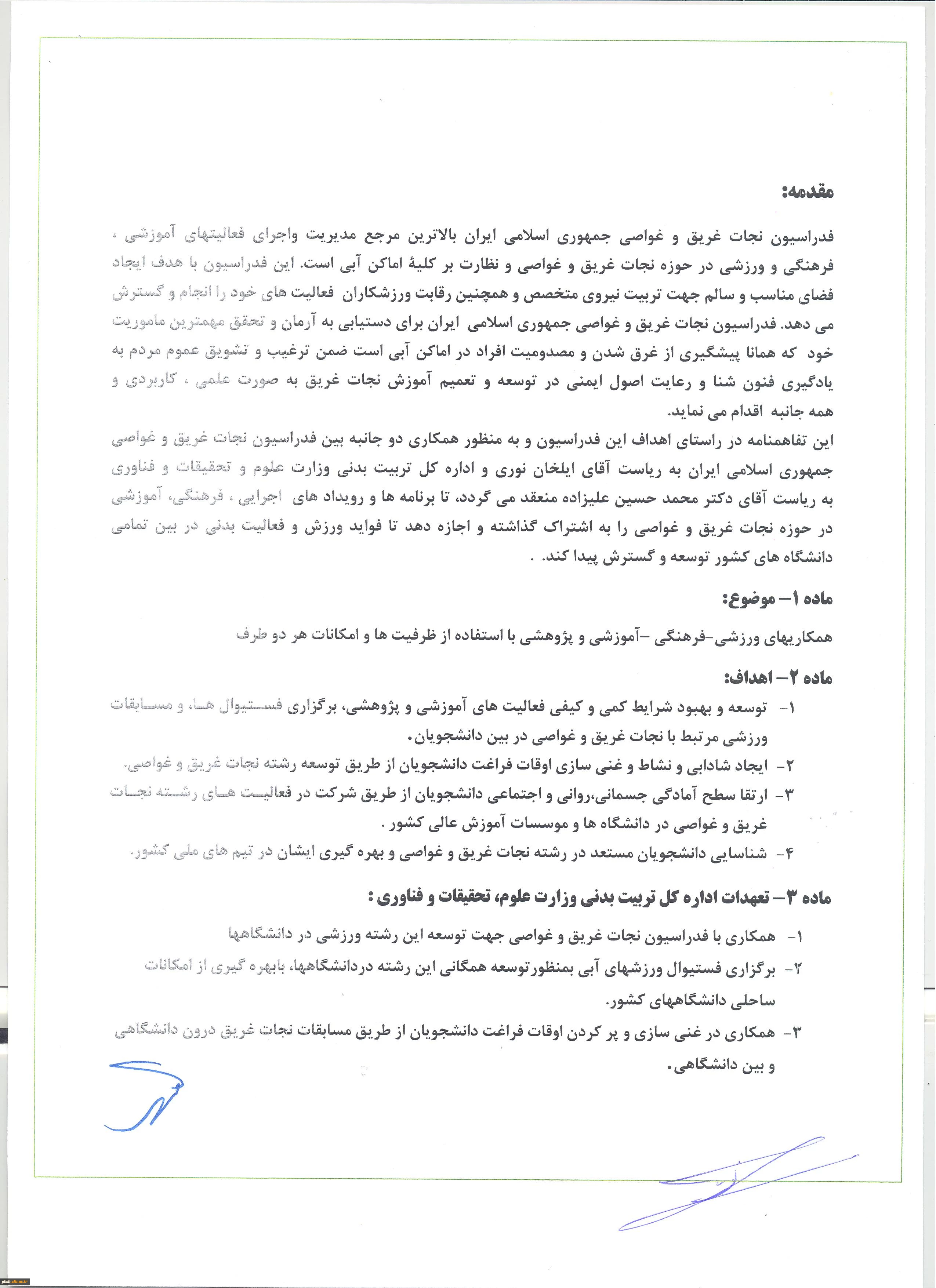 تفاهم نامه اداره کل تربیت بدنی وزارت علوم، تحقیقات و فناوری با فدراسیون نجات غریق و غواصی جمهوری اسلامی ایران 4