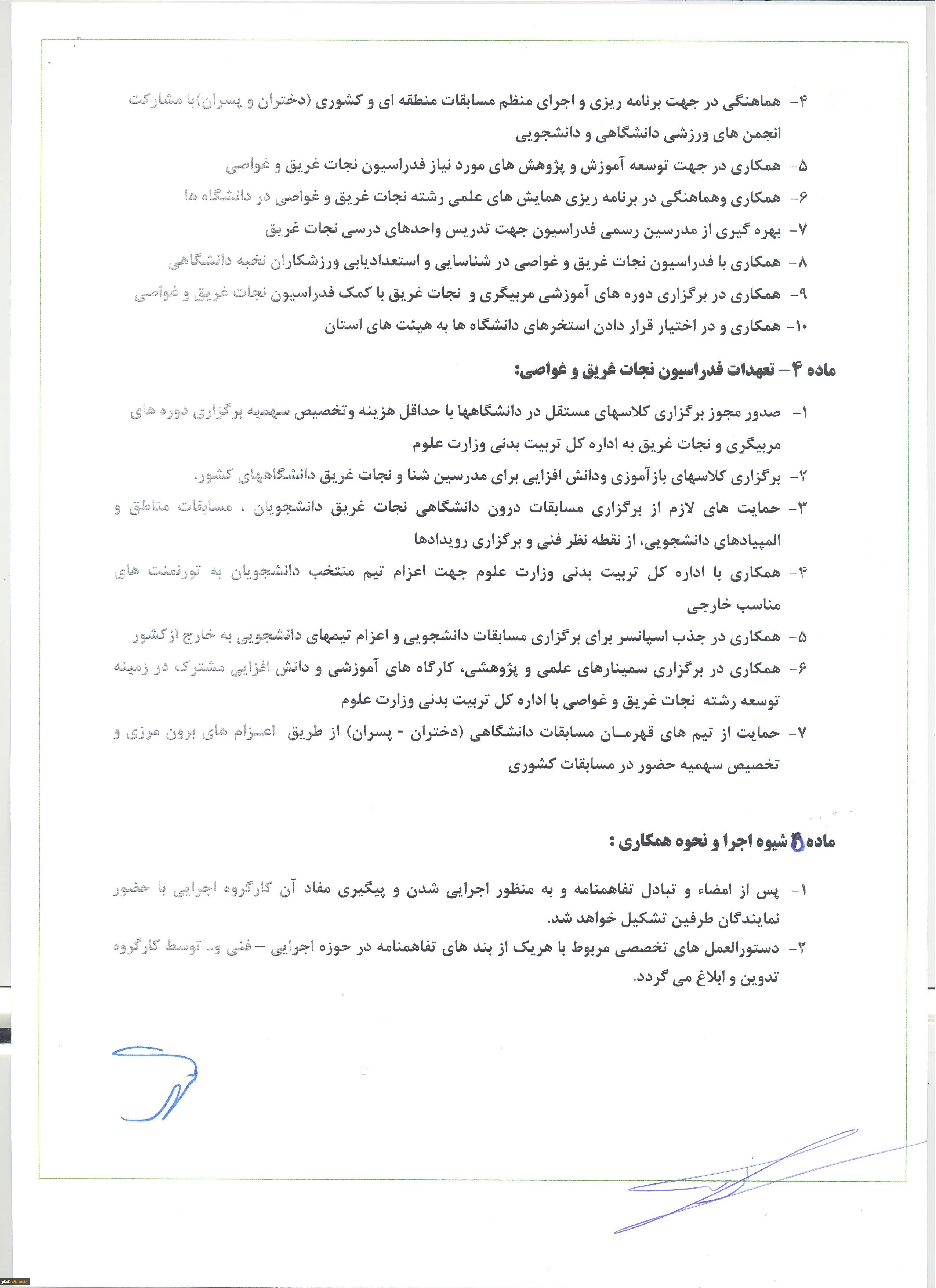 تفاهم نامه اداره کل تربیت بدنی وزارت علوم، تحقیقات و فناوری با فدراسیون نجات غریق و غواصی جمهوری اسلامی ایران 5