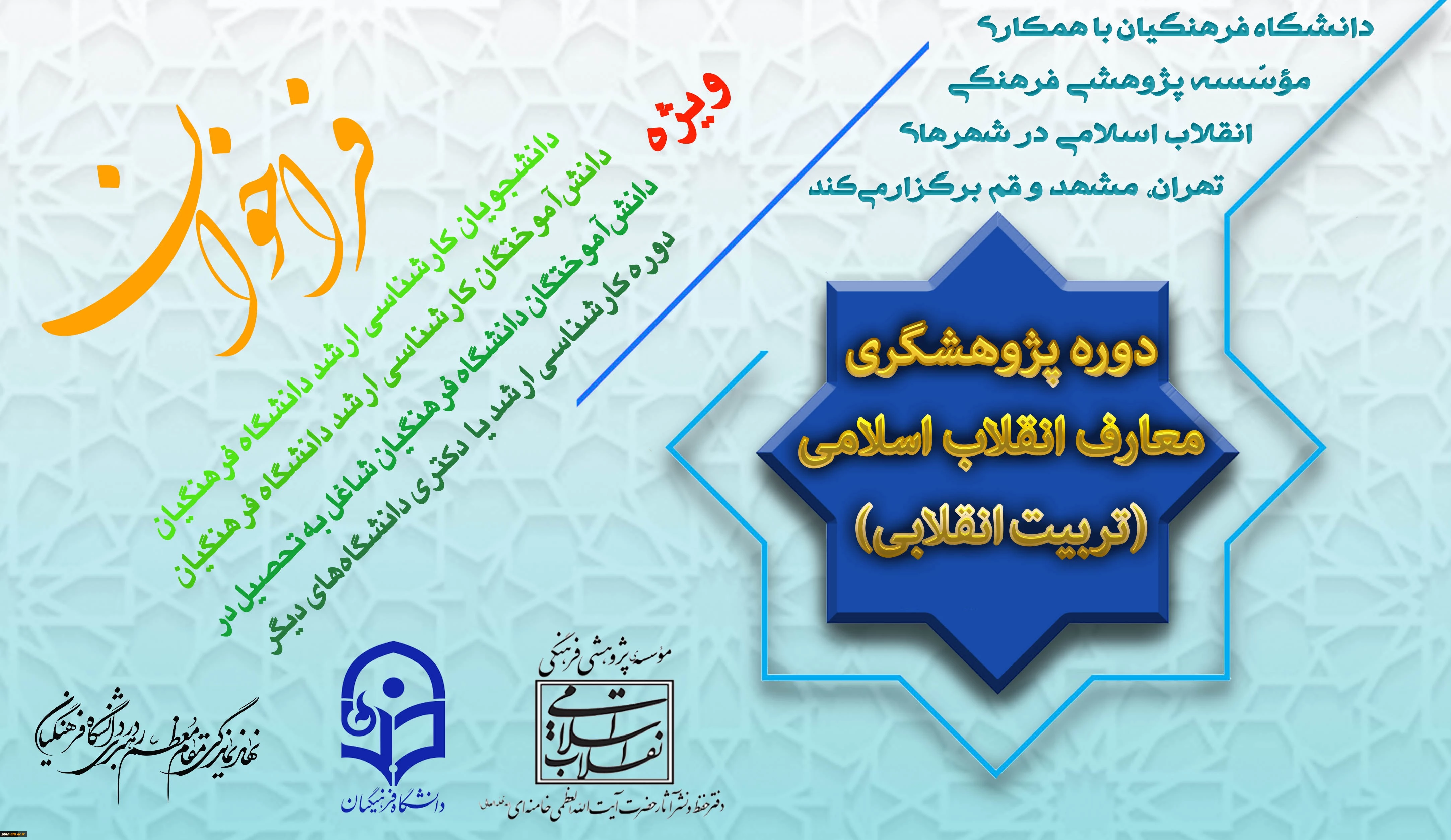 با همکاری دانشگاه فرهنگیان و مؤسسه پژوهشی فرهنگی انقلاب اسلامی انجام می گیرد: برگزاری اولین دوره پژوهشگری معارف انقلاب اسلامی(تربیت انقلابی) 2