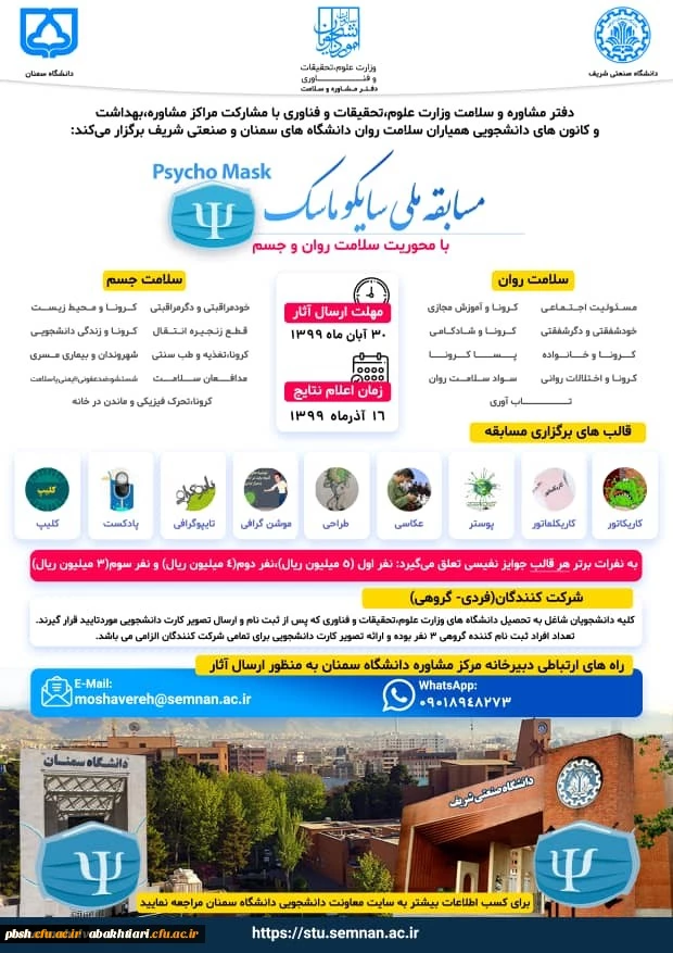 پویش دانشجویی سلامت روان برای همه و پویش من ماسک می زنم و مسابقه ملی با عنوان سایکو ماسک ویژه دانشجویان دانشگاه ها و موسسات آموزش عالی در سطح کشور 2