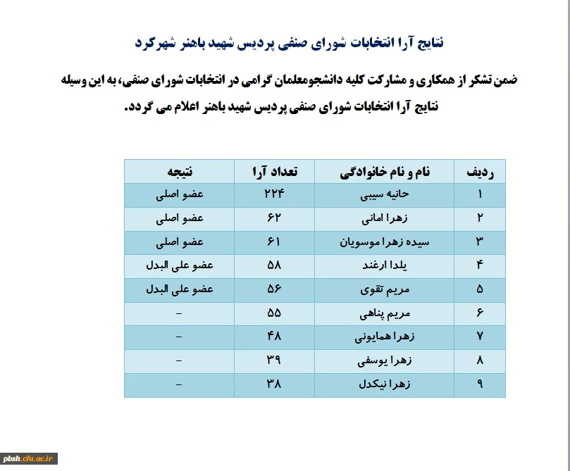 امتیاز دهید : اعالام نتایج انتخابات شورای صنفی پردیس شهید باهنر شهرکرد 2 دوشنبه 12 آبان 1399 ساعت 11:23