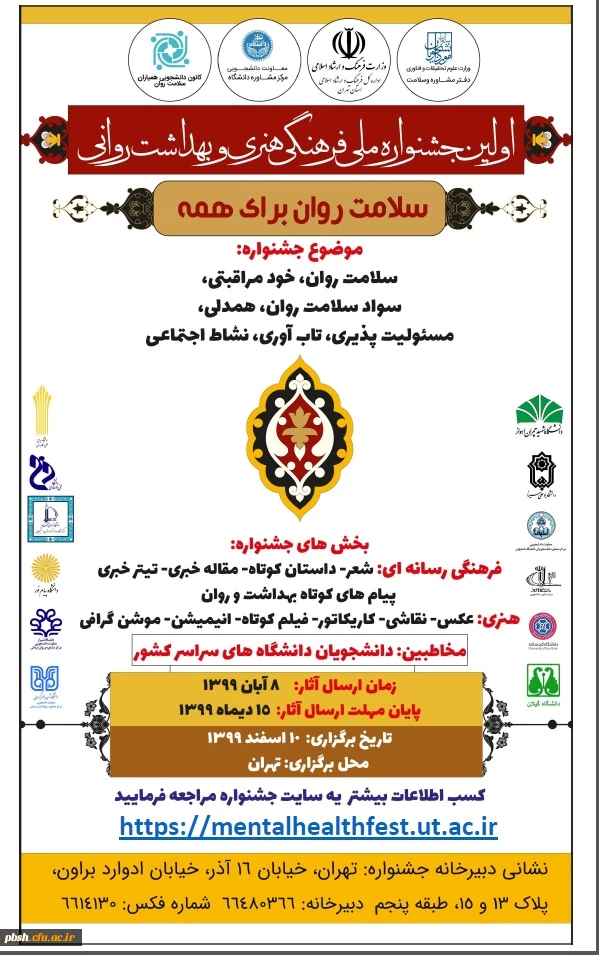 امتیاز دهید : فراخوان اولین جشنواره ملی فرهنگی، هنری و بهداشت روانی دانشجویی 3 دوشنبه 26 آبان 1399 ساعت 12:56