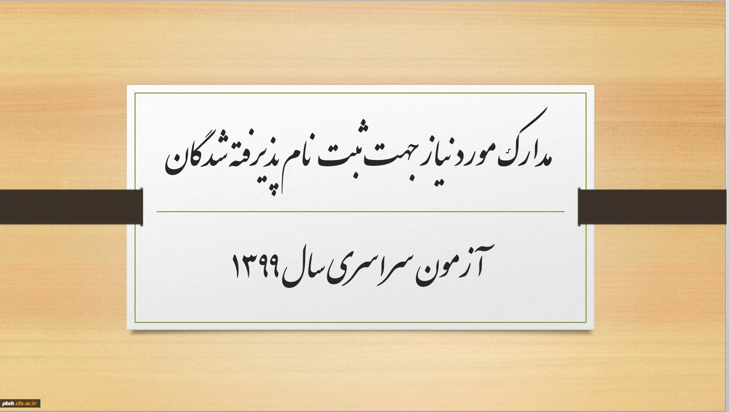 امتیاز دهید : مدارک مورد نیاز جهت ثبت نام پذیرفته شدگان آزمون سراسری سال 1399 2 سهشنبه 27 آبان 1399 ساعت 10:54