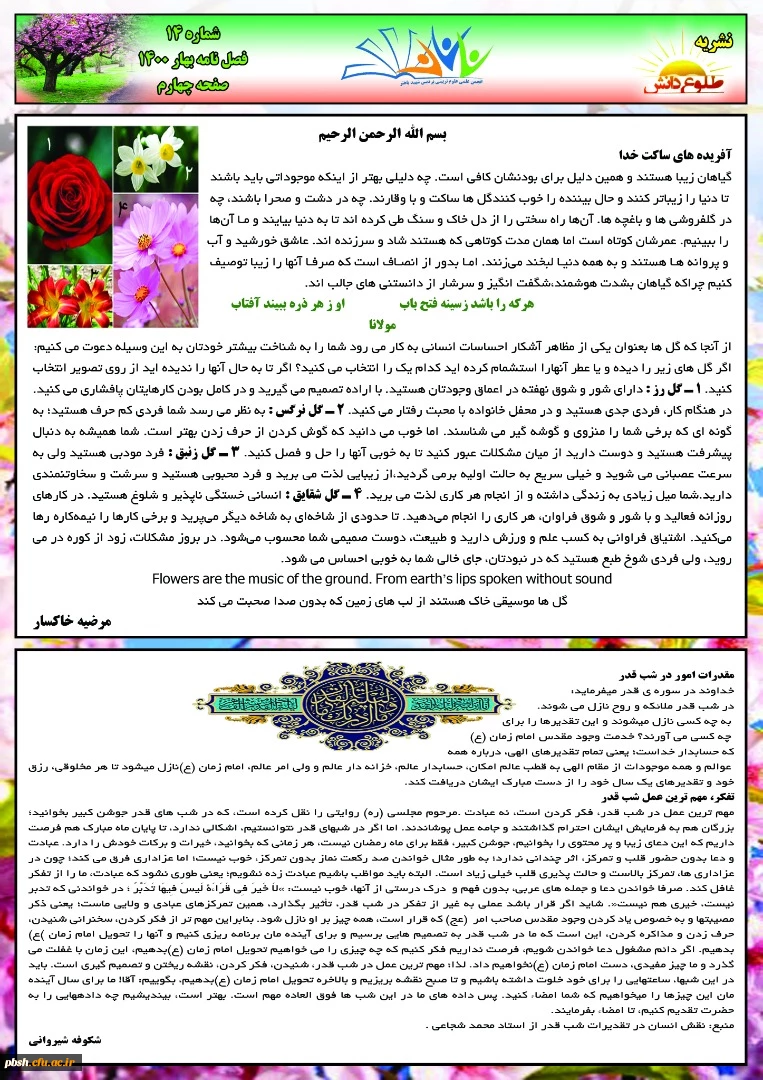 نشریه طلوع دانش شماره 14 ویژه بهار 1400 4