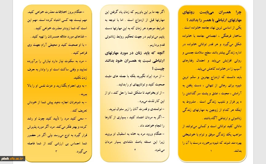 بروشور مهارت های زندگی: ارتباط همسران 2
