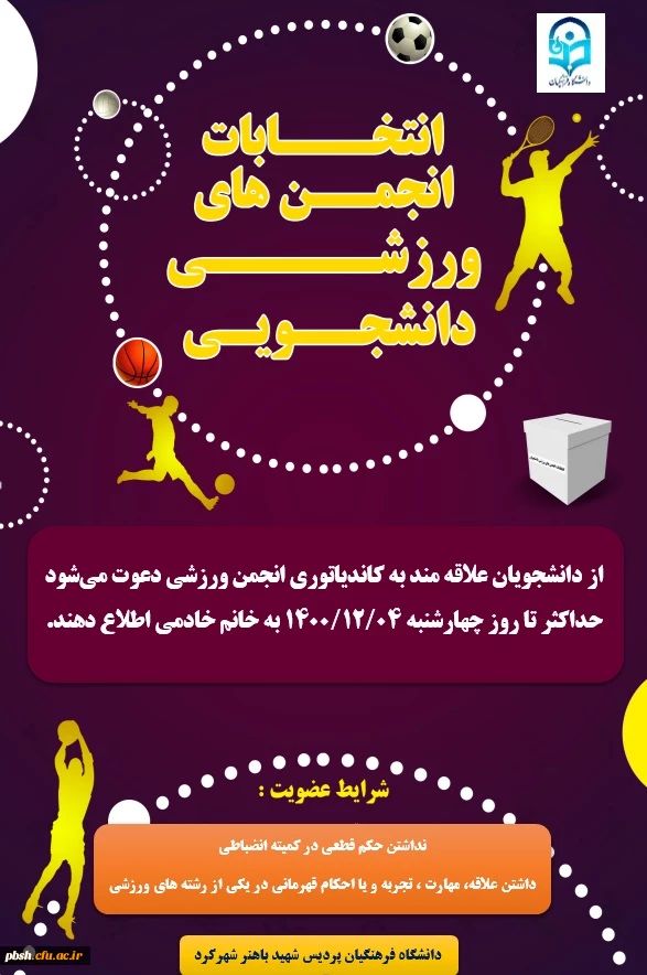 امتیاز دهید : فراخوان ثبت نام برای کاندیداتوری انتخابات انجمن ورزش دانشگاهی 2 دوشنبه 2 اسفند 1400 ساعت 12:14