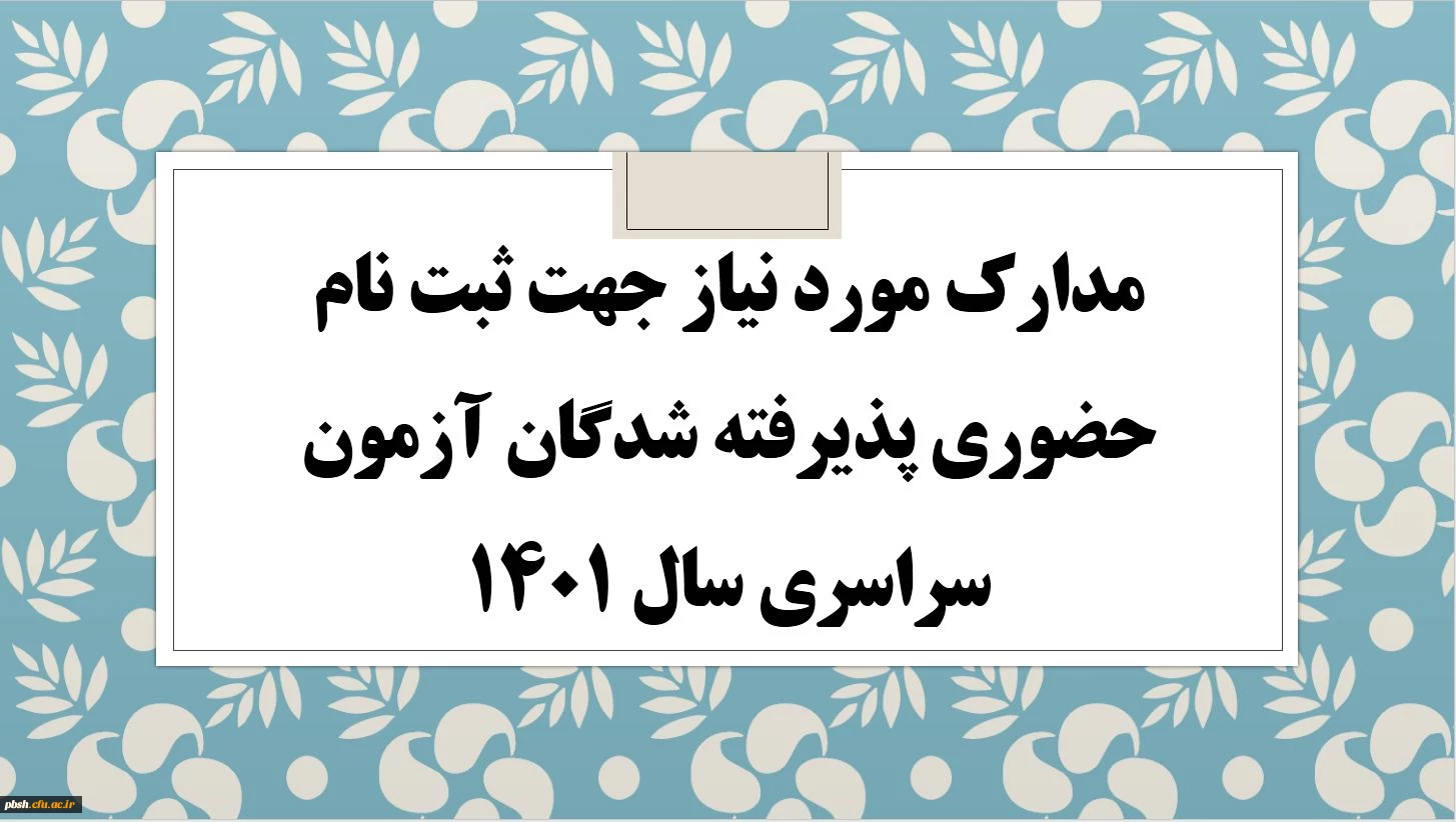 امتیاز دهید : مدارک مورد نیاز جهت ثبت نام پذیرفته شدگان آزمون سراسری سال 1400 2 شنبه 9 مهر 1401 ساعت 10:50